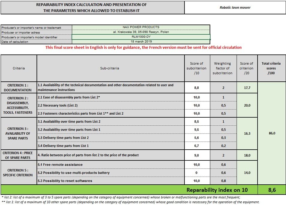 NAC RLM1000-DY robot cortacésped NAC, superficie de trabajo máxima 1000 m2, controlado con un smartphone, Bluetooth, WIFI