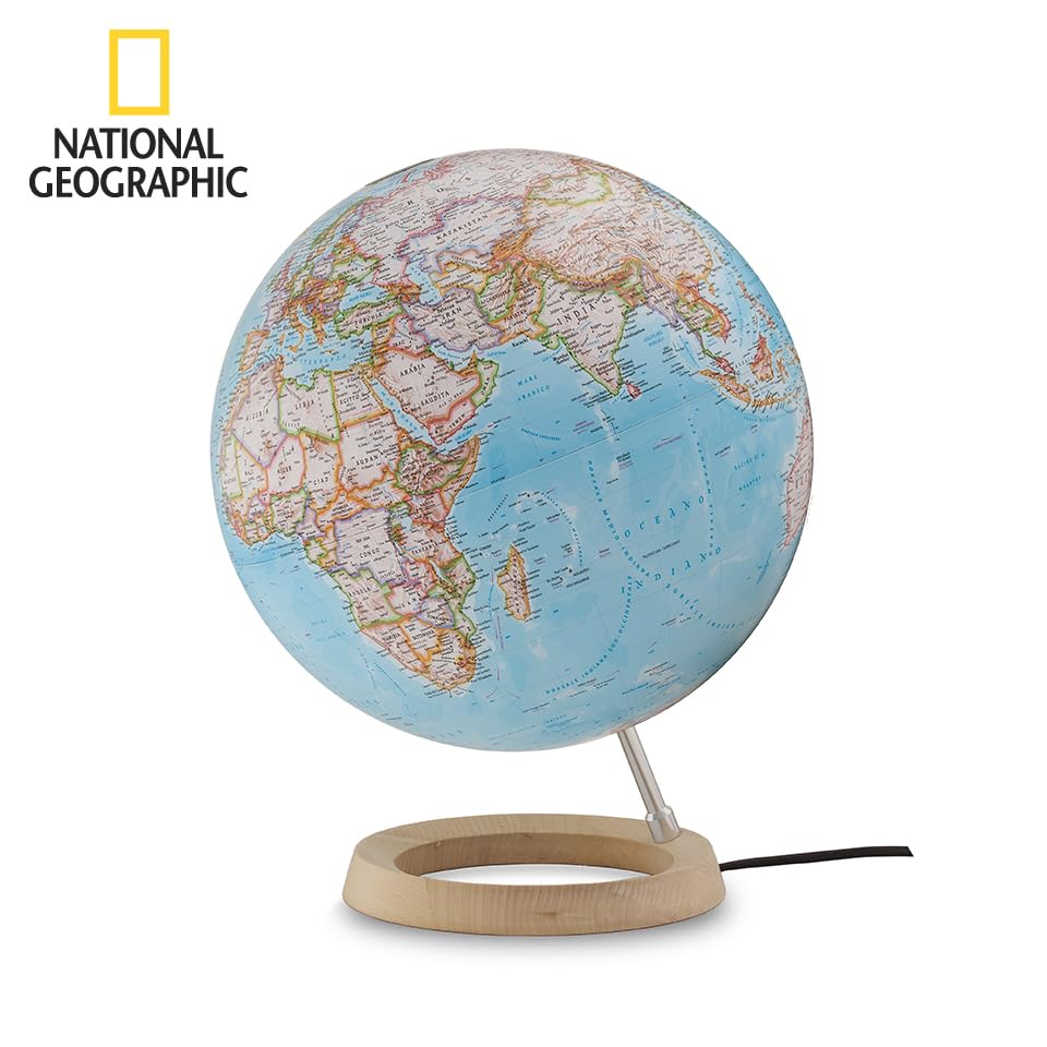 National Geographic - Globo terráqueo Neon Classic. Esfera azul, arce y aluminio, 30 cm, iluminada