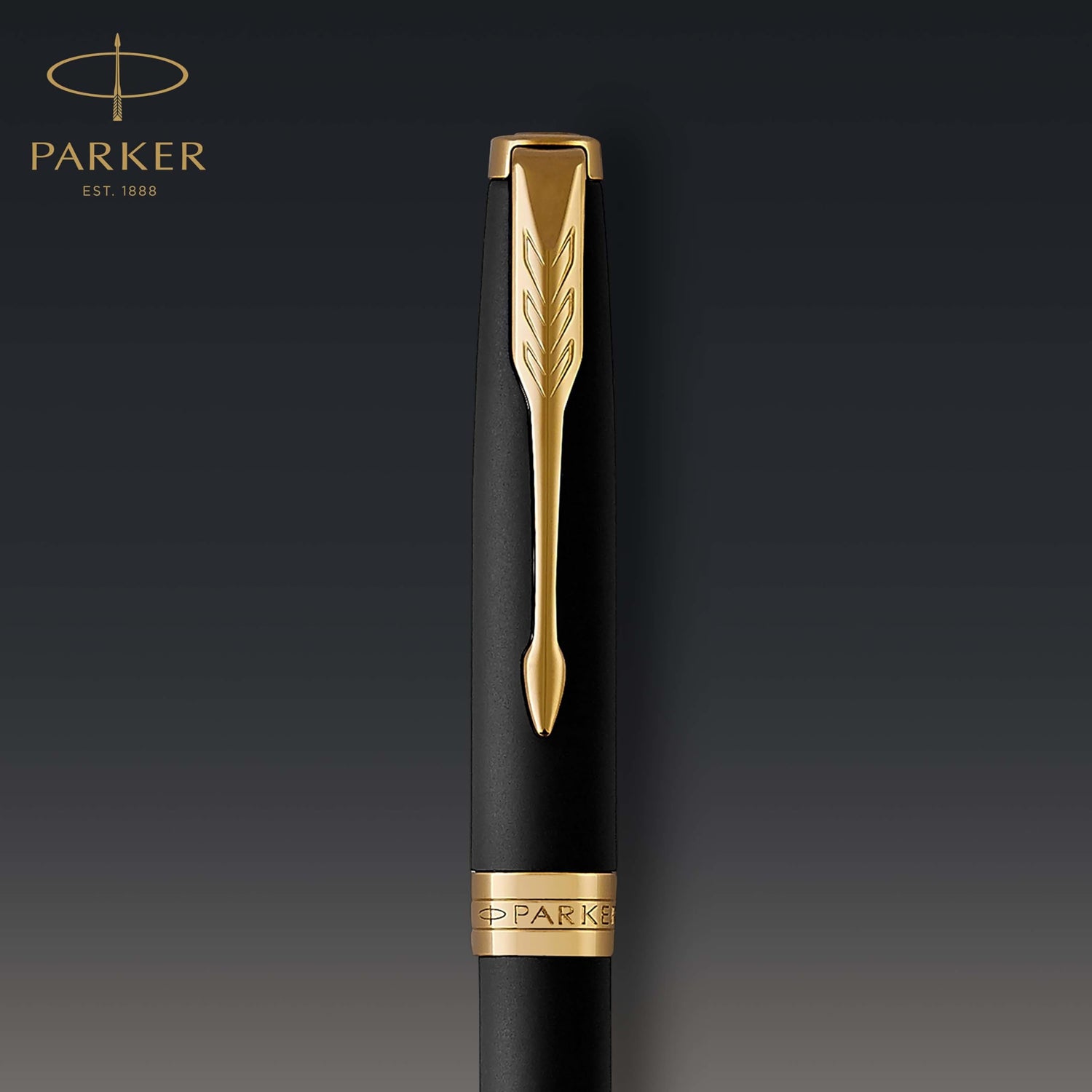Parker Sonnet bolígrafo | lacado en negro mate con adorno dorado | punta media | en estuche de regalo
