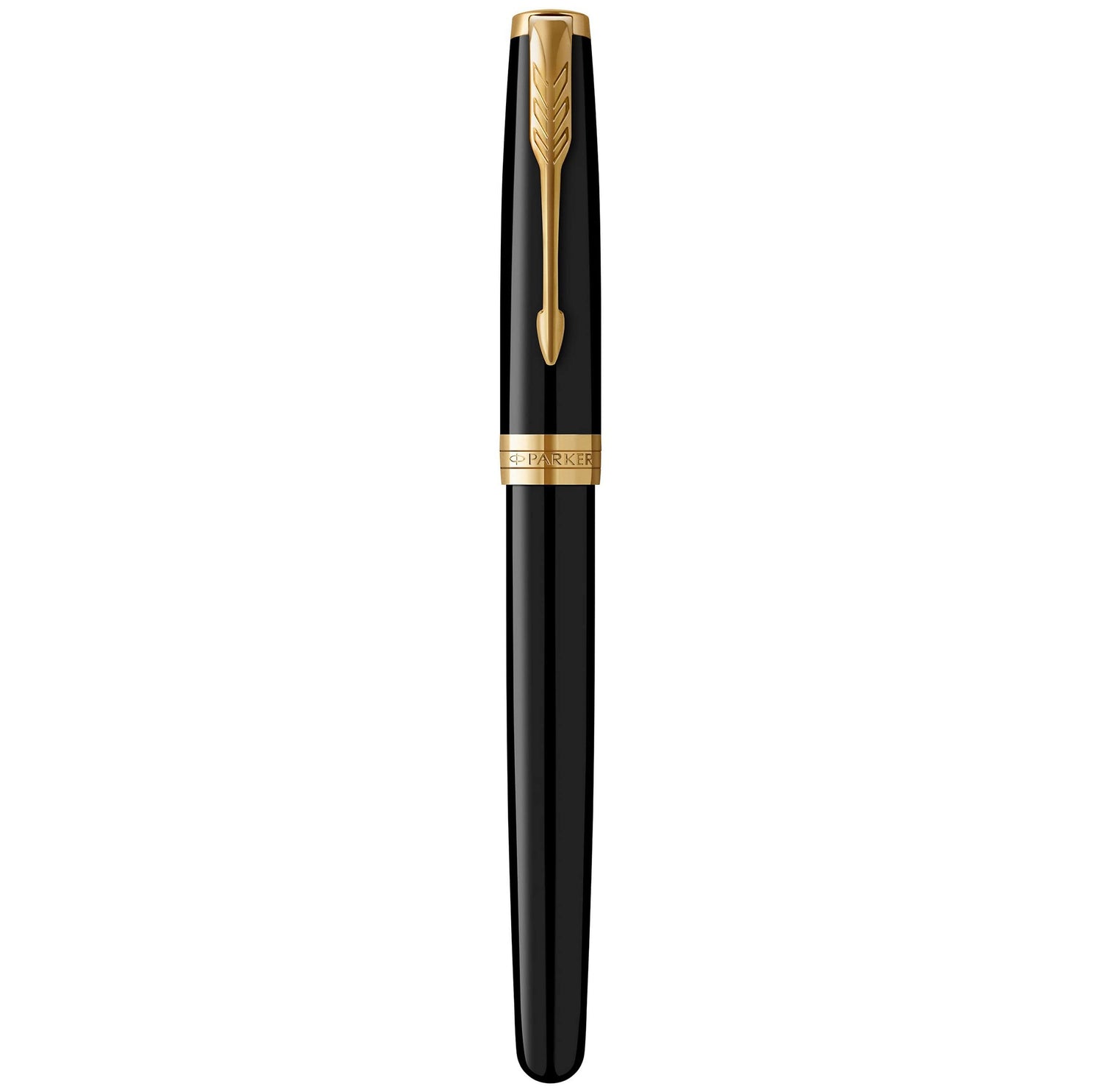 Parker Sonnet - Pluma estilográfica (lacada en negro, con adorno dorado y plumín de punto fino, en estuche)