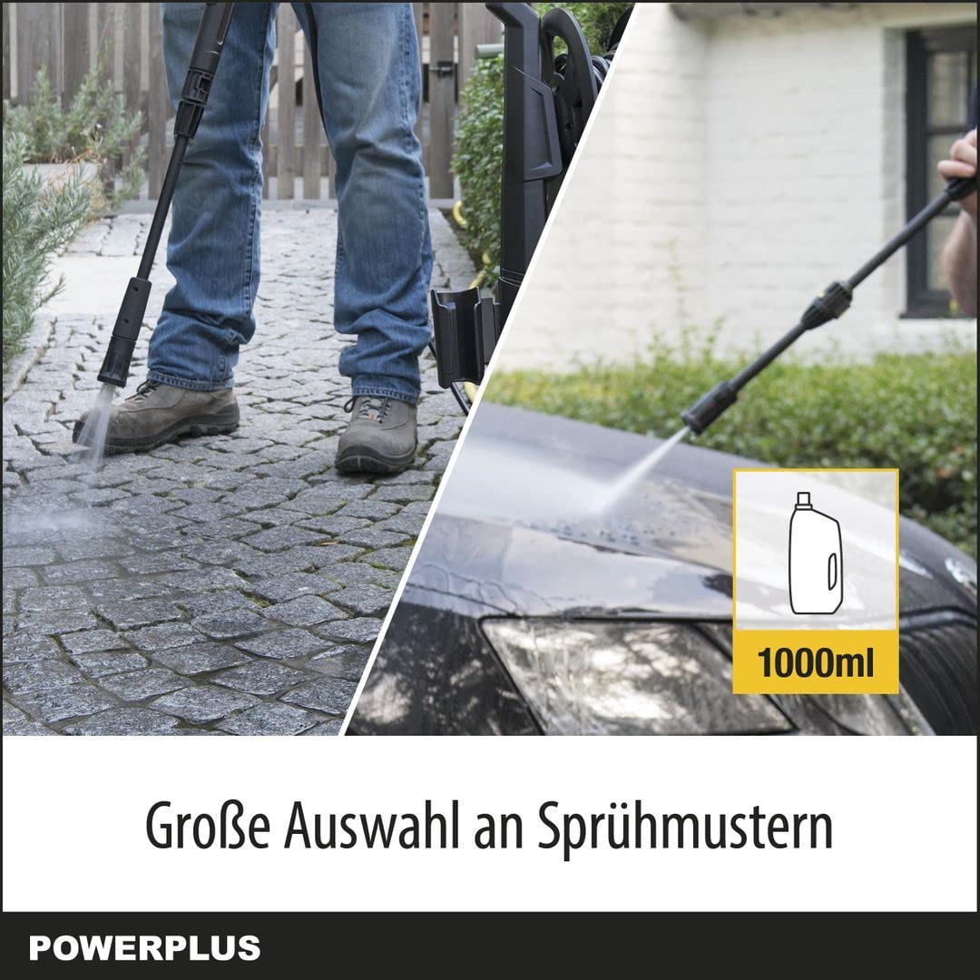 - HydroMpiadora PowerPlusPowxG90410 1800 W Lanza ajustable. Longitud de gestión 8 m. Presión máxima: 140 bar. Características del color: negro-gris especificaciones detergente detergente sí nomazg ajustable