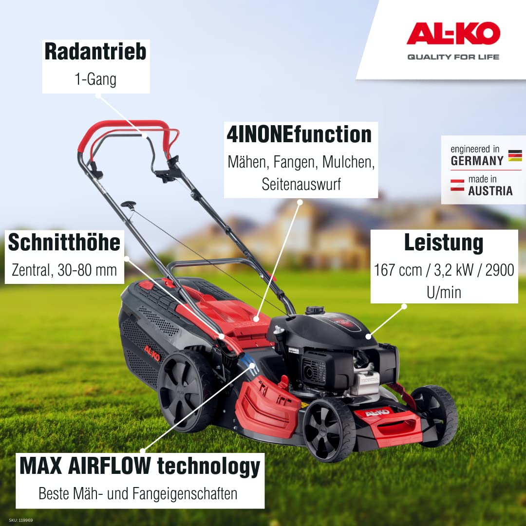 - Ancho de corte de 51 cm, por lo que es perfecto para cortar césped de tamaño mediano y grande de hasta 1800 m².