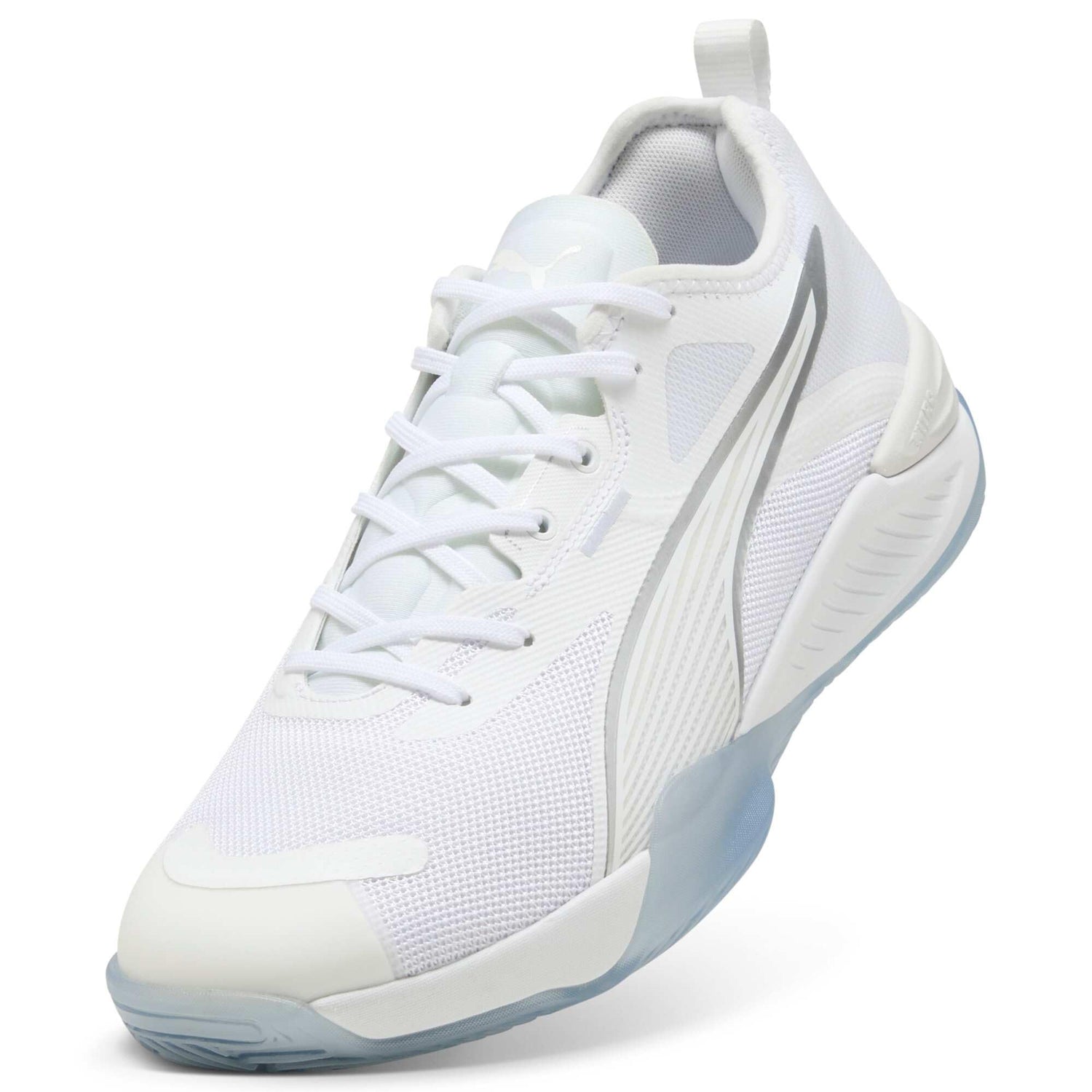PUMA Eliminate Nitro 4, Zapato de Tribunal Interior Unisex Adulto, Blanco Plata, 45 EU