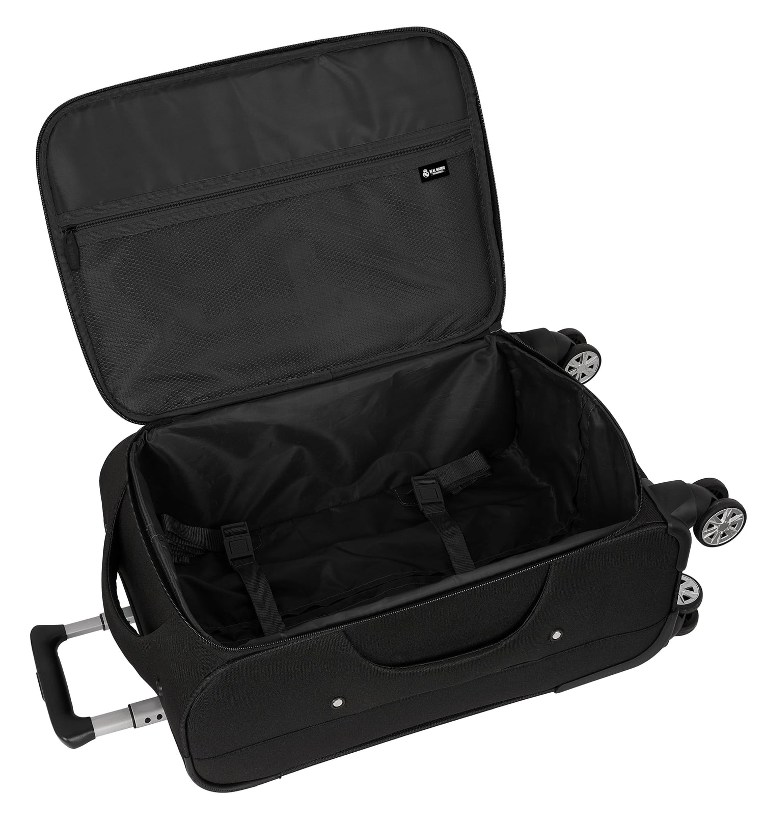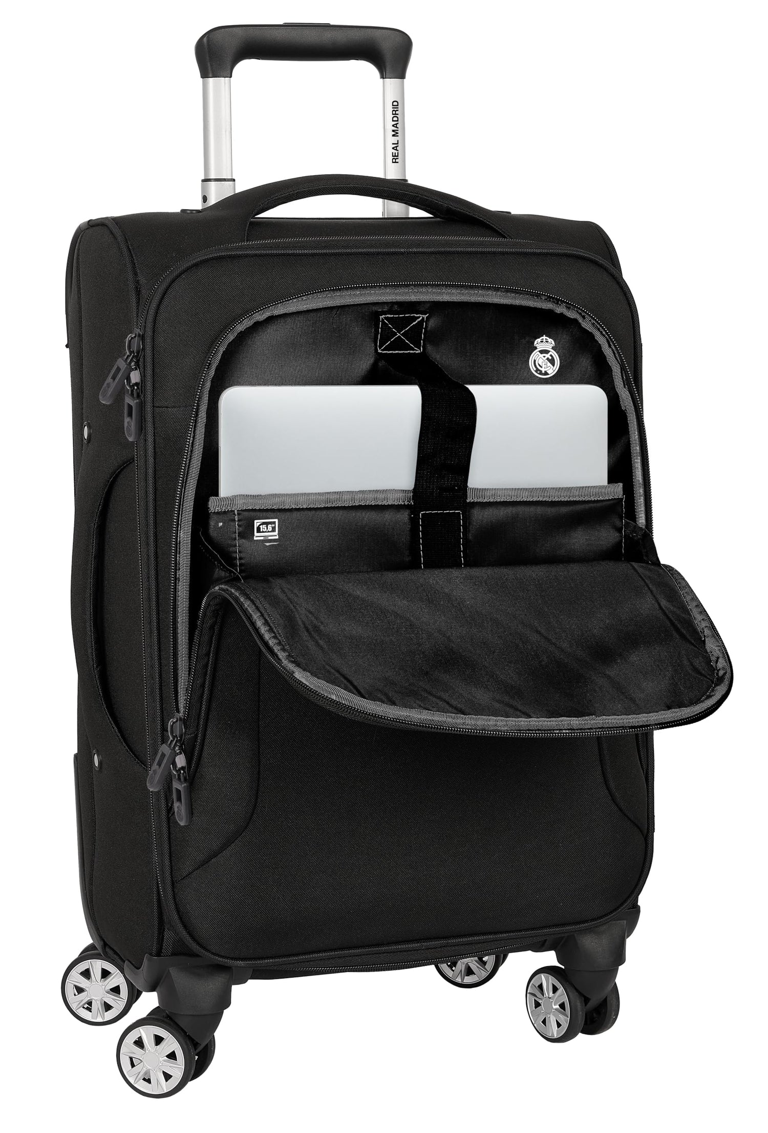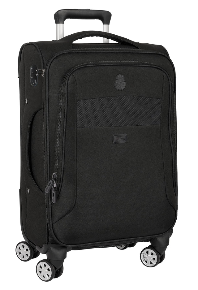 Real Madrid Premium - Trolley Cabina Blanda 20 Pulgadas, Maleta con Ruedas, Candado de Seguridad, Maleta Ligera, 35x20x51 cm, Color Negro