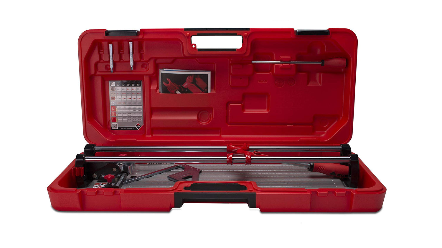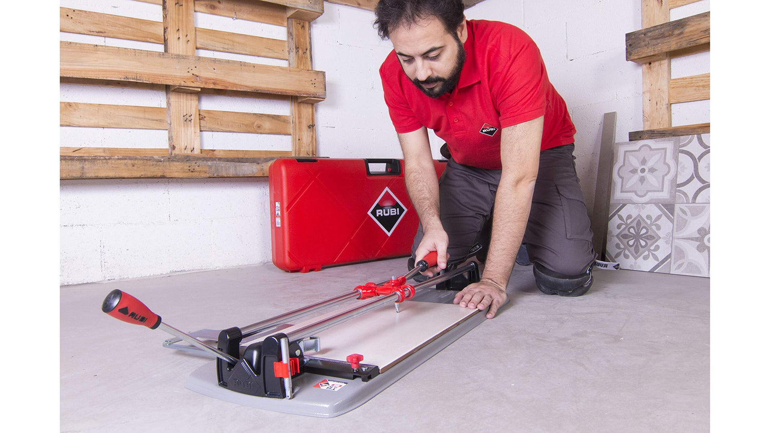 - Empuñaduras bimaterial y diseño ergonómico, con tope lateral de grandes dimensiones para una mayor sujeción de la baldosa, y precisión en los cortes repetitivos; base reforzada y de gran dimensión