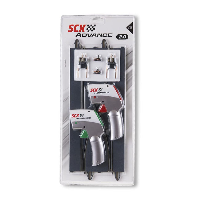 • Convierte tu circuito Scalextric Original a Scalextric Advance. Incluye 2 mandos Advance, 2 guías Advance con trencillas, 2 Kit Advance Coche Tipo A y una pista Cambio de carril.