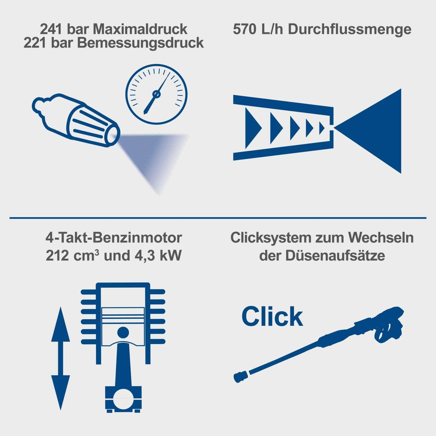 - 241 bar Presión máxima | 221 bar Presión nominal