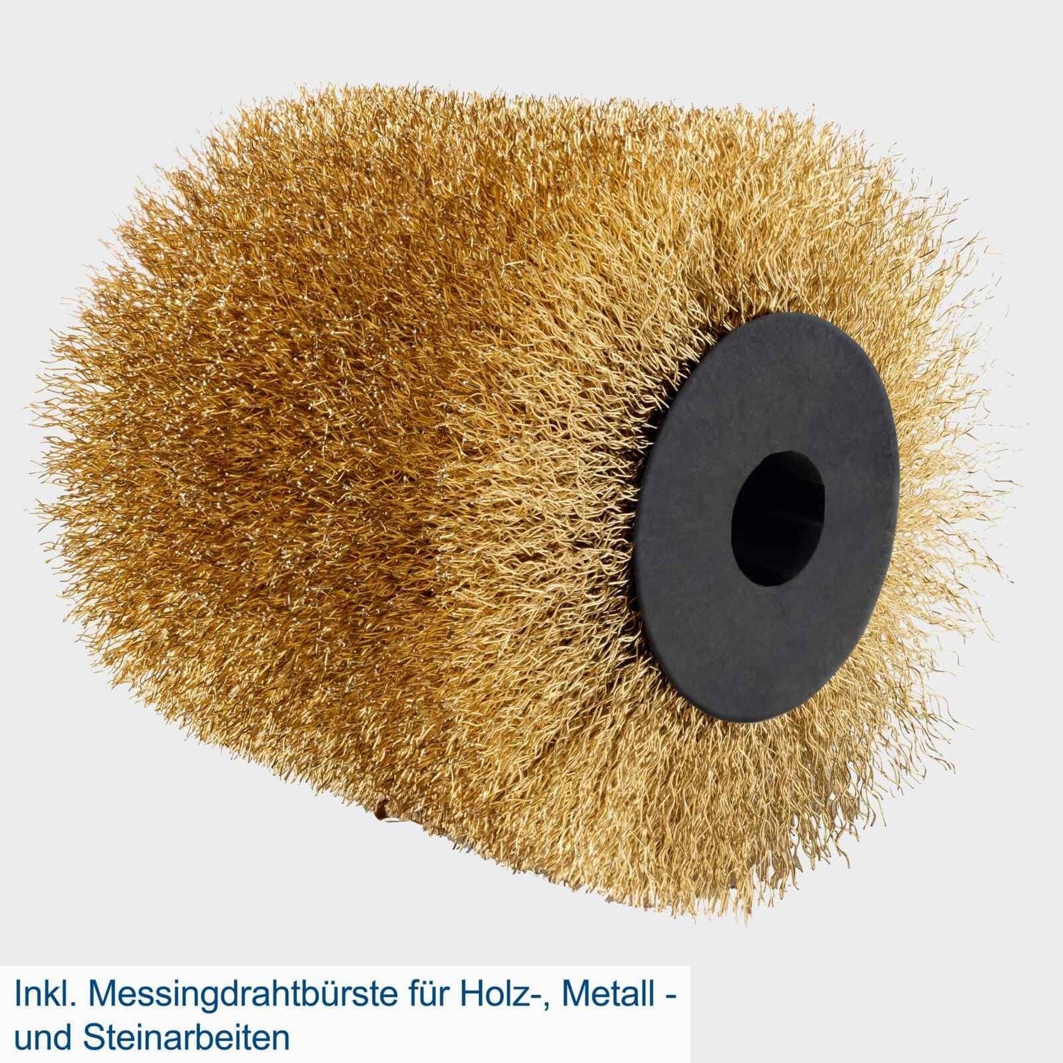 Scheppach Máquina de satén MRS1300 con arranque suave y potencia de 1300 W, incluye cepillo de latón, tiras abrasivas y cepillo de nailon, ancho de cepillo de 100 mm con diámetro de 120 mm, velocidad
