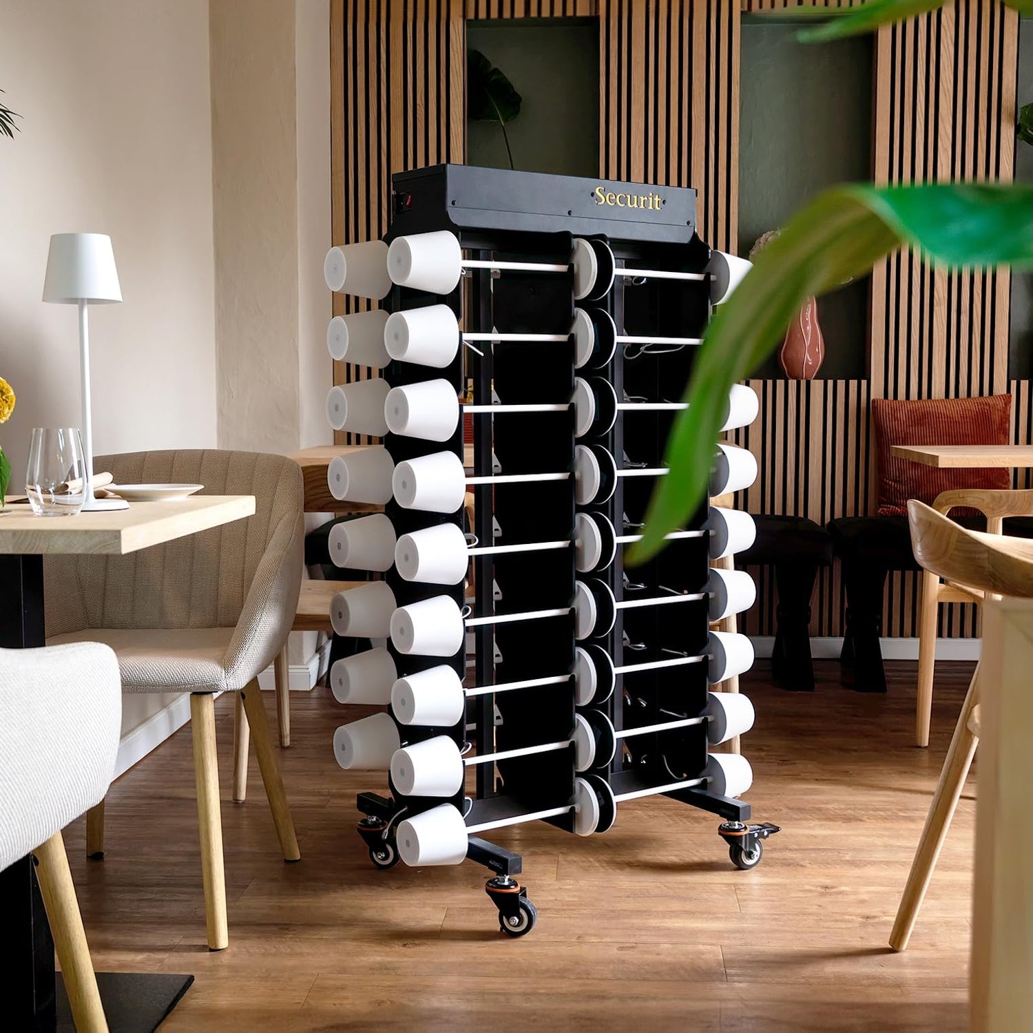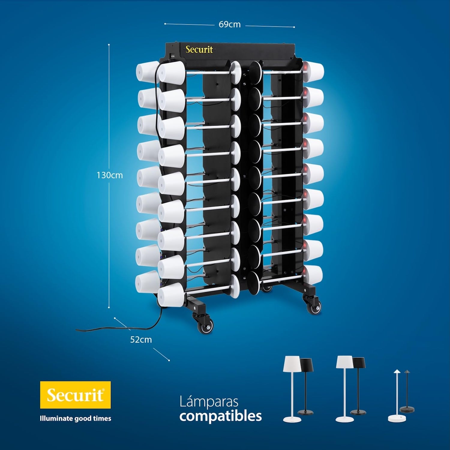 SECURIT - Estación de carga para 36 lámparas LED - Compatible con Lámparas LED Feline, Georgina y Angelina - Sobre ruedas - Café, Bar, Restaurante, Hotel - Color negro