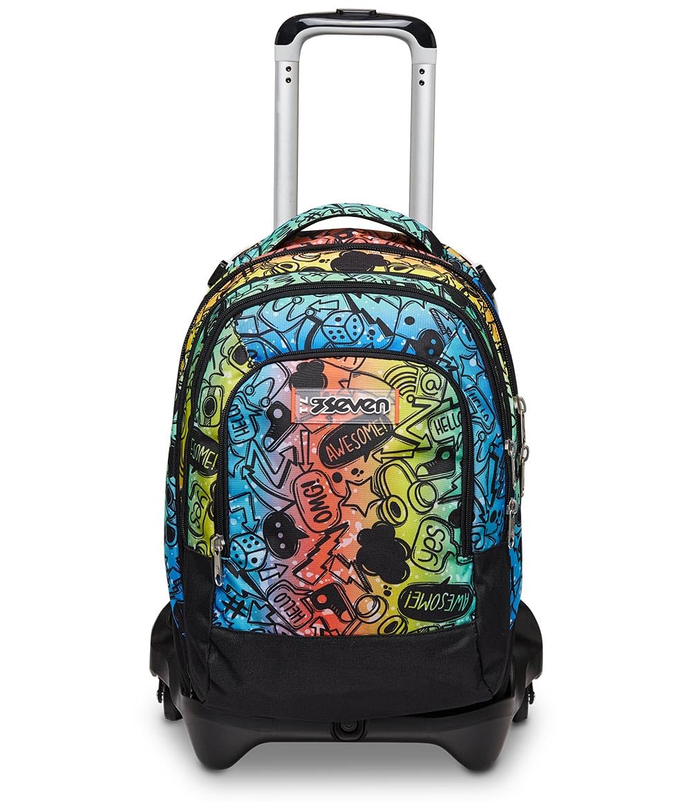 Seven Mochila con 3 Ruedas TROLLEY JACK-3WD - COLOUR EXPRESSION, Multicolor - Mochila 3 en 1, Escolar con Carro, Crossover System - Bolso Escolar Niños, Niñas y Adolescentes
