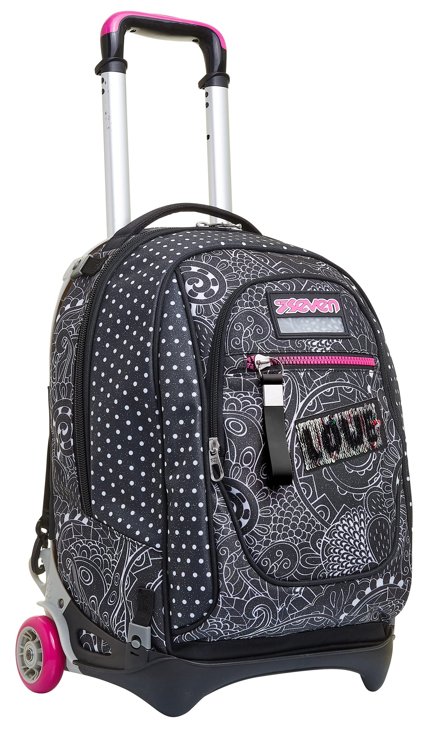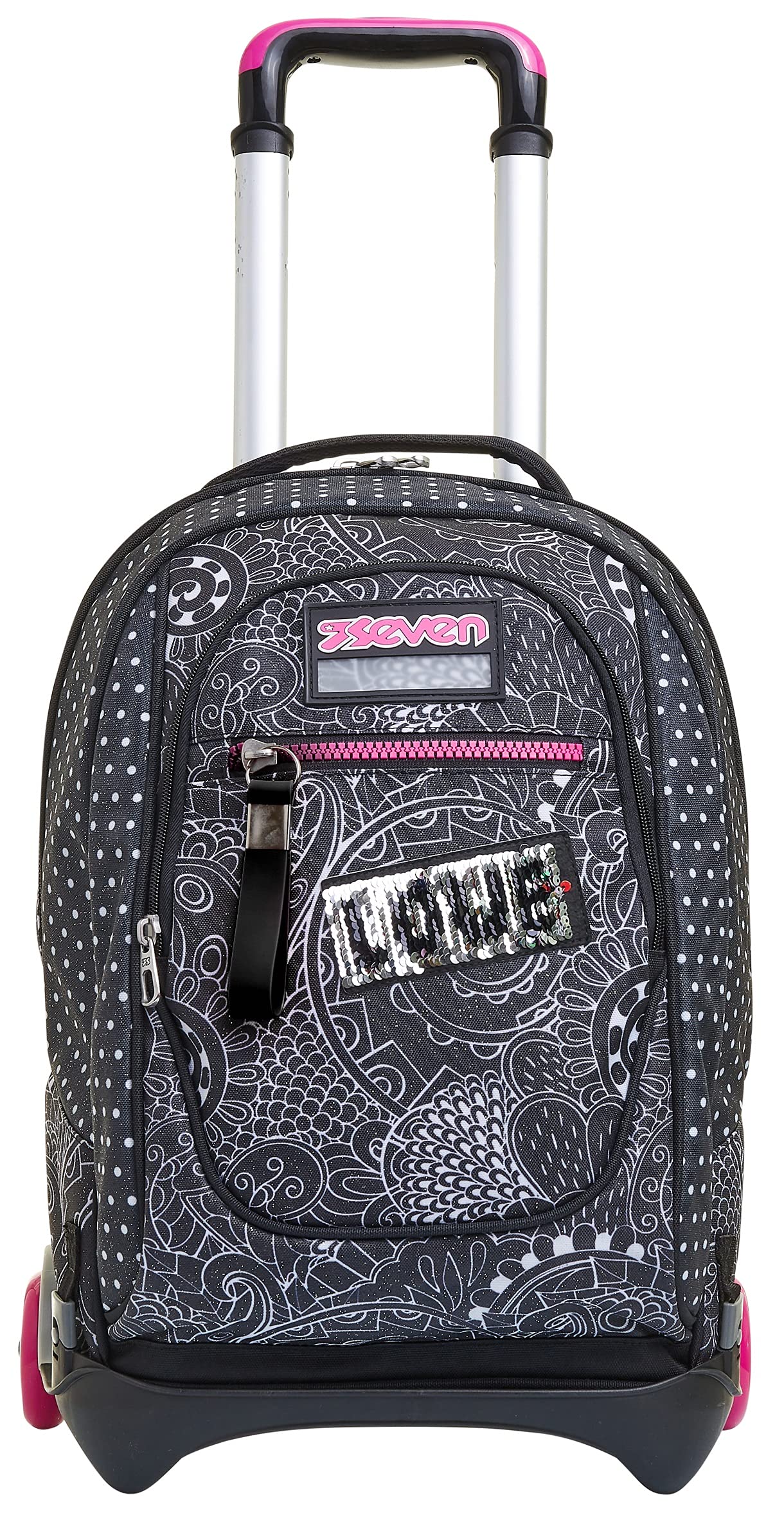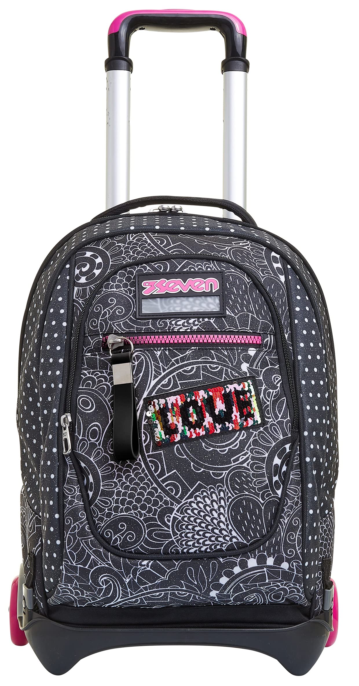 Seven Yub Mochila con Ruedas TROLLEY NEW TECH YANTRY GIRL, Negro - Mochila 3 en 1, Mochila Escolar con Carro - Bolso Escolar Niños, Niñas, Adolescentes - Bolsillo Frontal con organizador
