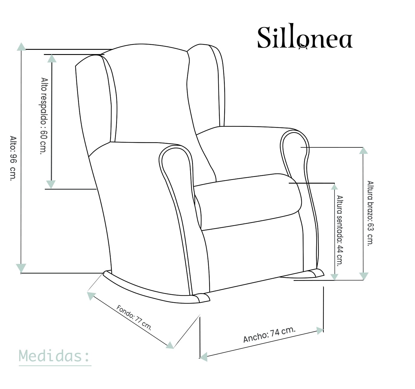 - ✨ DIMENSIONES: Altura total: 96 cm | Ancho: 74 cm | Profundidad: 77 cm | Altura del asiento: 44 cm | Respaldo: 60 cm | Ancho del asiento: 46 cm | Fondo del asiento: 50 cm | Capacidad máxima: 100 kg.