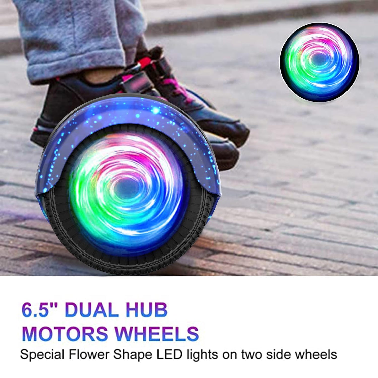Detalles: SISIGAD Hoverboard, Electric Scooters with Bluetooth & 6.5" Flash Wheels & LED Headlights Fender Lights, All Terrain for Kids