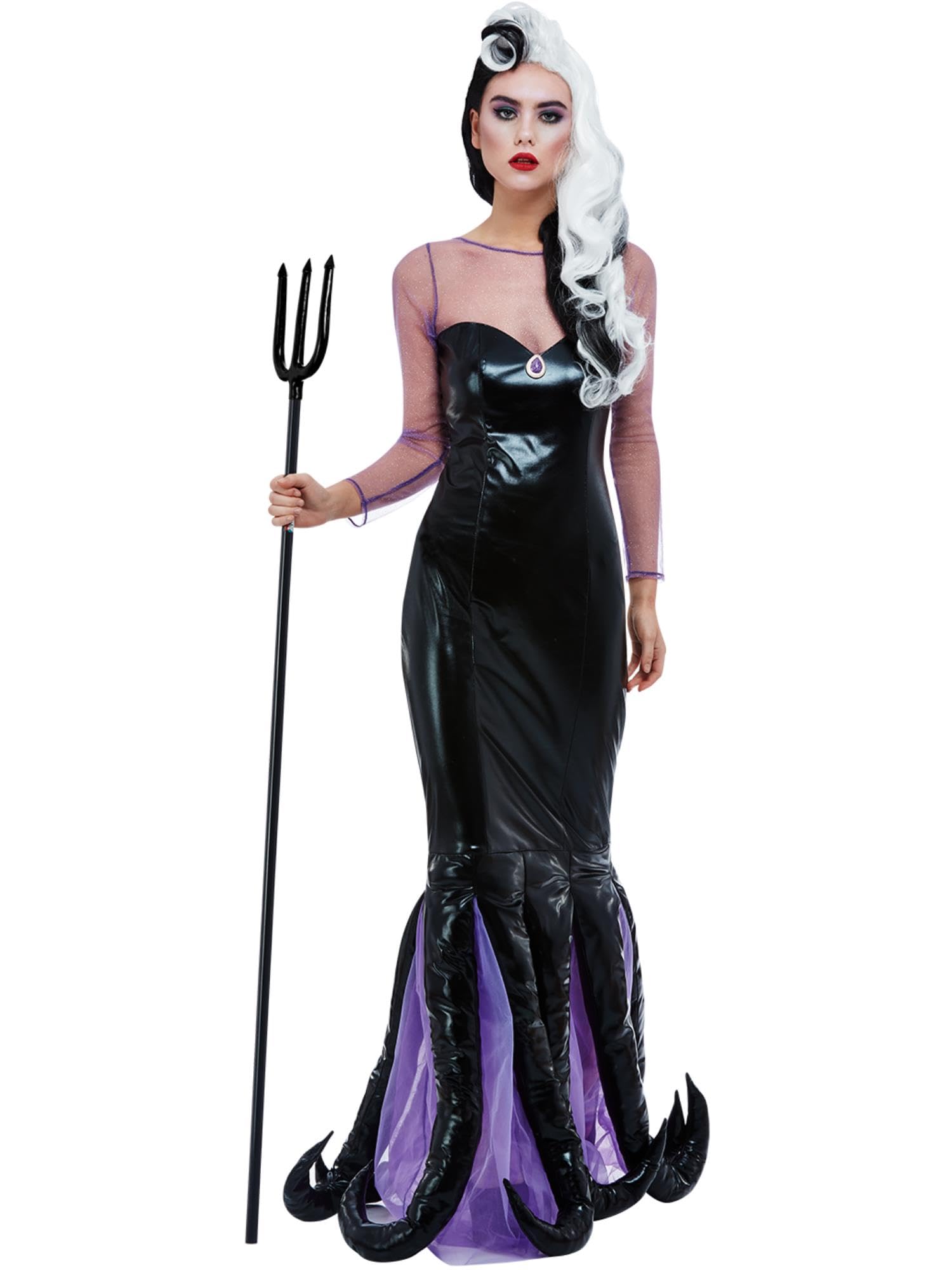 - Incluye disfraz de bruja del mar malvado, vestido negro