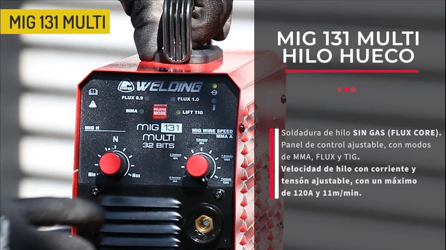 - Equipo electrónico para soldadura por arco con hilo tubular con núcleo fundente (FCAW), también conocida como Flux Core, sin necesidad de gas, TIG LIFT ARC y electrodo recubierto. // INCLUYE bobina de hilo hueco de 0,45Kg.