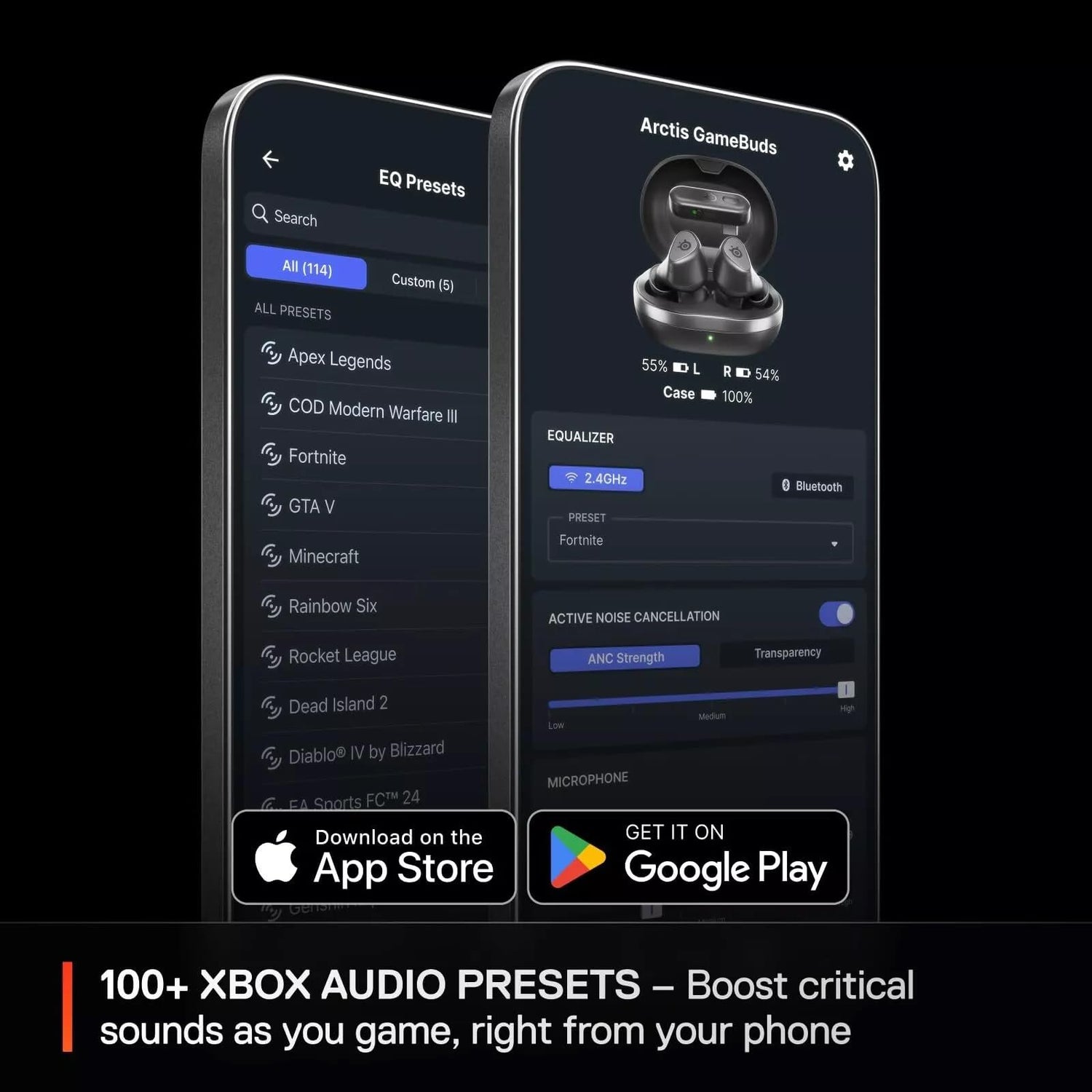 Steelseries Arctis GameBuds™ para Xbox - Auriculares inalámbricos para Juegos - 2,4 GHz + BT5.3 - Modo ANC/Transparencia - Resistencia al Agua IP55-40 Horas de autonomía - Carga inalámbrica - Xbox,