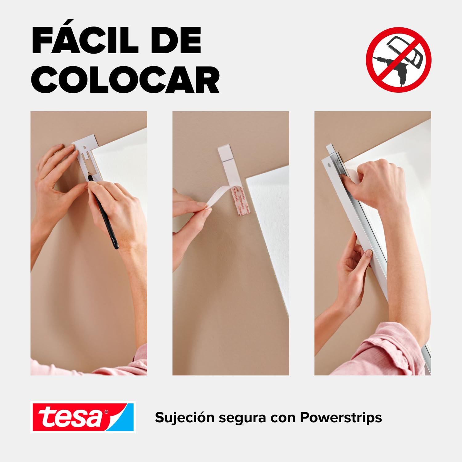 - Instalación rápida y sin complicaciones con tesa Powerstrips: la tecnología adhesiva inteligente permite un montaje con pegado fiable y limpio, sin taladrar, sin tornillos ni tacos