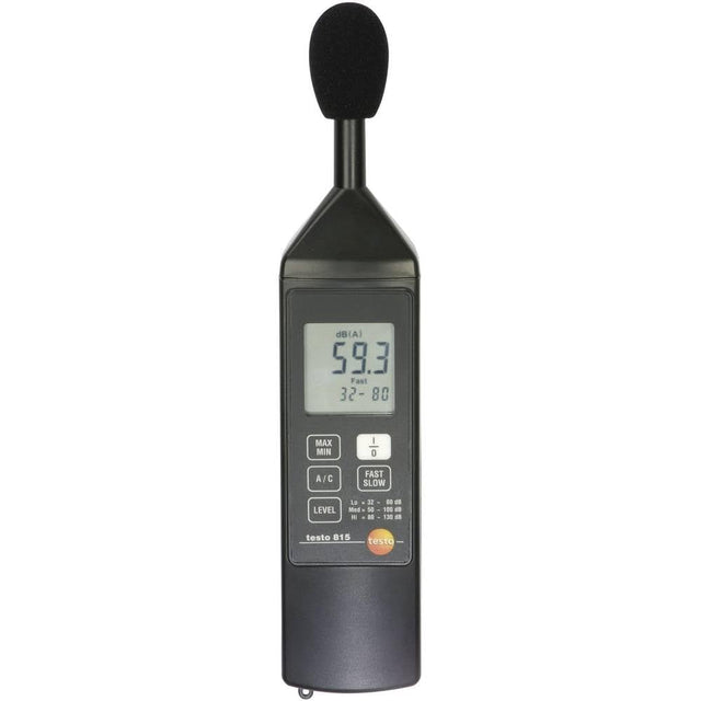 Detalles: El medidor de ruido testo 815 puede utilizarse para mediciones de control en el área de calefacción y aire acondicionado, en plantas de combustión o en cualquier puesto de trabajo. Además, también es posible determinar el ruido de cualquier maquinaria o discoteca nocturna de forma rápida y precisa.