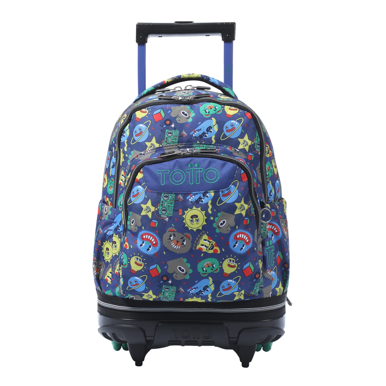 TOTTO - Mochila Escolar con Ruedas Desmontables, Modelo Tiza, Capacidad 26 L, Mochila PC 15.4", Bolsillo Botella, Manija Telescópica, Espaldar Ergonómico y Correas en S, Estampado Tello Azul