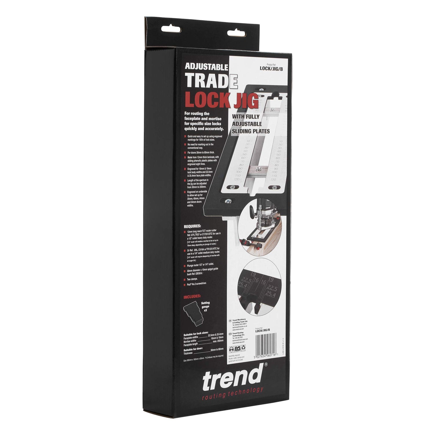 - VERSATILIDAD: La plantilla de bloqueo ajustable Trend para placas de cerradura y pestillos de mortaja, número de modelo LOCK/JIG/B, es una herramienta versátil para ajustar placas de cerradura y pestillos.