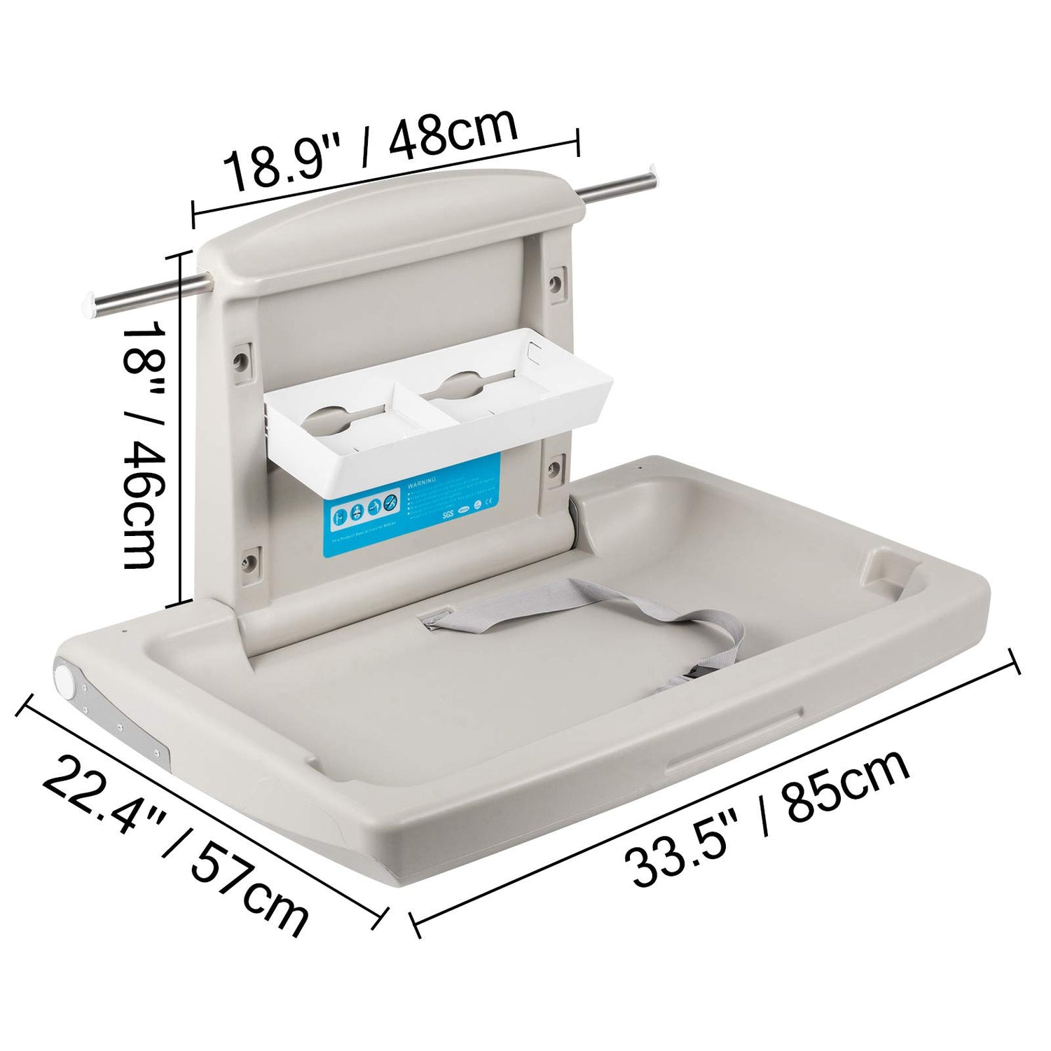 VEVOR Cambiador Bebe Pared Cambiador Bebe Plegable Pared 33,5x22,4x18,5" Cambiadores de Pared Cambiador de Pañales de Pared Horizontal Gris Cambiador de Pared HDPE, para Baños Públicos o Privados