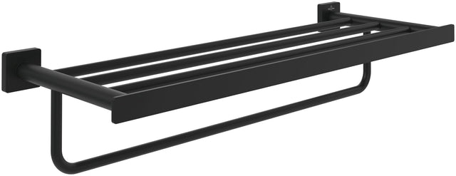 Villeroy & Boch Bandeja para toallas Elements Striking, toallero con estante para montaje en pared, estante de toallas con barra, longitud 595 mm, rectangular, Negro mate