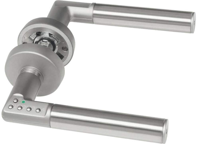 Detalles: Un innovador tirador de puerta interior con cód. La puerta permanece siempre afuera y cuando el tiempo está encendido con la función "Stopper" permanece abierta para el tiempo deseado. El mango permite el acceso solo ingresando el código apropiado. Alimentado por dos baterías de litio montadas en el mango, que permiten aproximadamente 100.000 aberturas, sin pérdida de memoria en caso de fallo de voltaje y reemplazo de batería.
